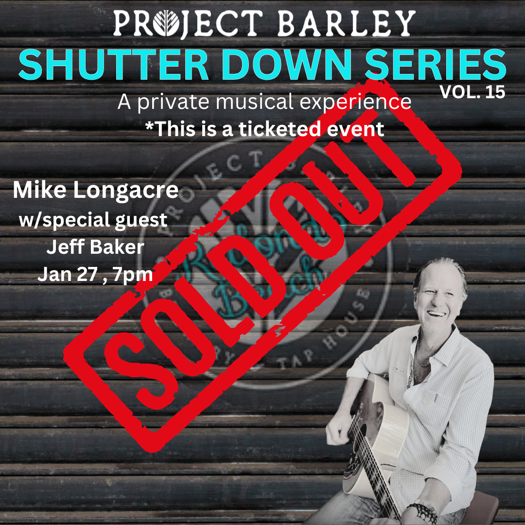 Our Shutter Down Series has become a South Bay gathering of amazing singer songwriters. This listening room event gives you the opportunity to get up close and personal with artists we have come to know and love. Get your tickets now before they sell out for local legend Mike Longacre with special guest Jeff Baker. Every show has sold out to date so do not wait.