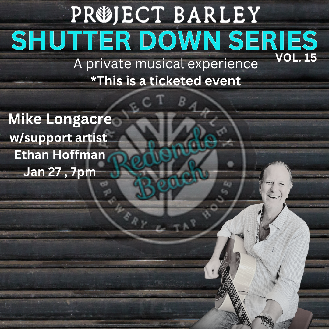 Our Shutter Down Series has become a South Bay gathering of amazing singer songwriters. This listening room event gives you the opportunity to get up close and personal with artists we have come to know and love. Get your tickets now before they sell out for local legend Mike Longacre with supporting artist Ethan Hoffman. Every show has sold out to date so do not wait.